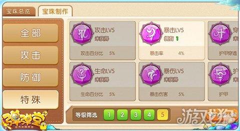 所谓宝珠,即是《弹弹堂手游》中的一类加成物品,不同类别的宝珠拥有不同的属性,而不同等级的宝珠加成效果又不尽相同。简单来说,手游中的宝珠目前分为3大类:攻击宝珠、防御宝珠和特殊宝珠,它们分别拥有不同的属性。攻击类宝珠主要增加攻击力、暴击伤害、暴击率或护甲穿透,防御类宝珠主要增加生命值、护甲、速度或怒气。特殊类宝珠是最最腻害的宝珠,它们虽然只拥有一种属性加成,但加成比例非常高。