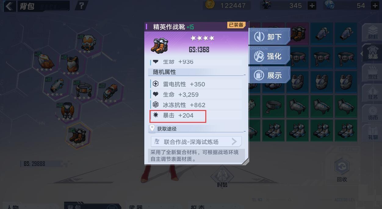 首先是“暴击属性优先选择”,目前在《幻塔》中,能够随机到暴击属性的装备只有鞋子跟手套,而暴击对输出能力的增幅非常之大,所以偏爱暴力输出的玩家,一定要优先选择带有暴击属性的装备。