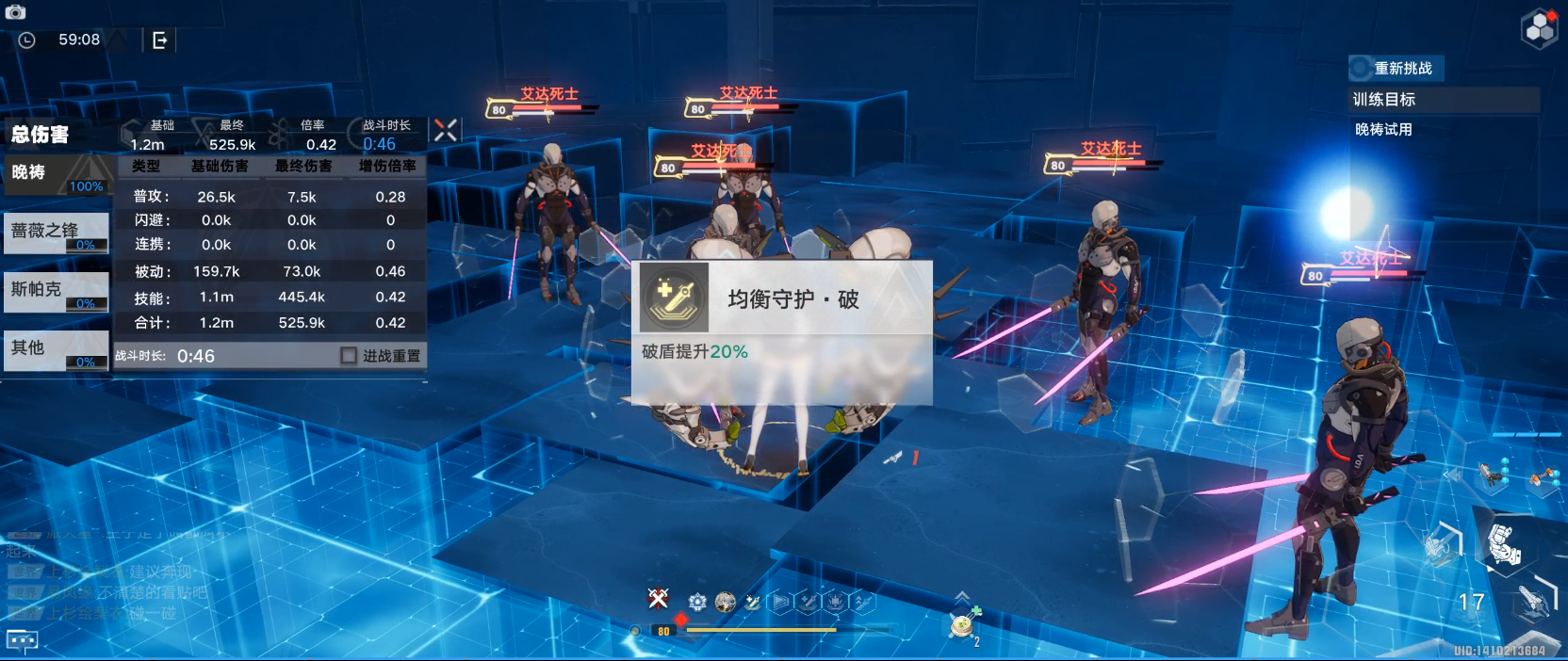 在激活均衡共鸣时使用【星落】,会触发均衡守护效果,即生命高于50%时破盾伤害提升20%,生命低于50%时,最终伤害提升10%,破盾提升10%。这里如果你的队友奶量够高的话,其实是可以让你的晚祷始终保持破盾提高20%的状态。