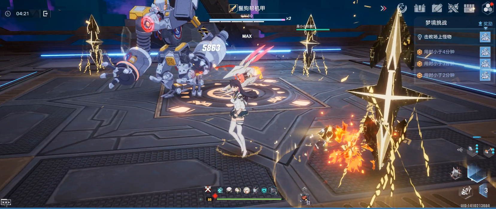 (1)每次使用技能,场地中会留下一个“锋芒”柱体,场上“锋芒”数量会影响【辉起】技能的整体效果。