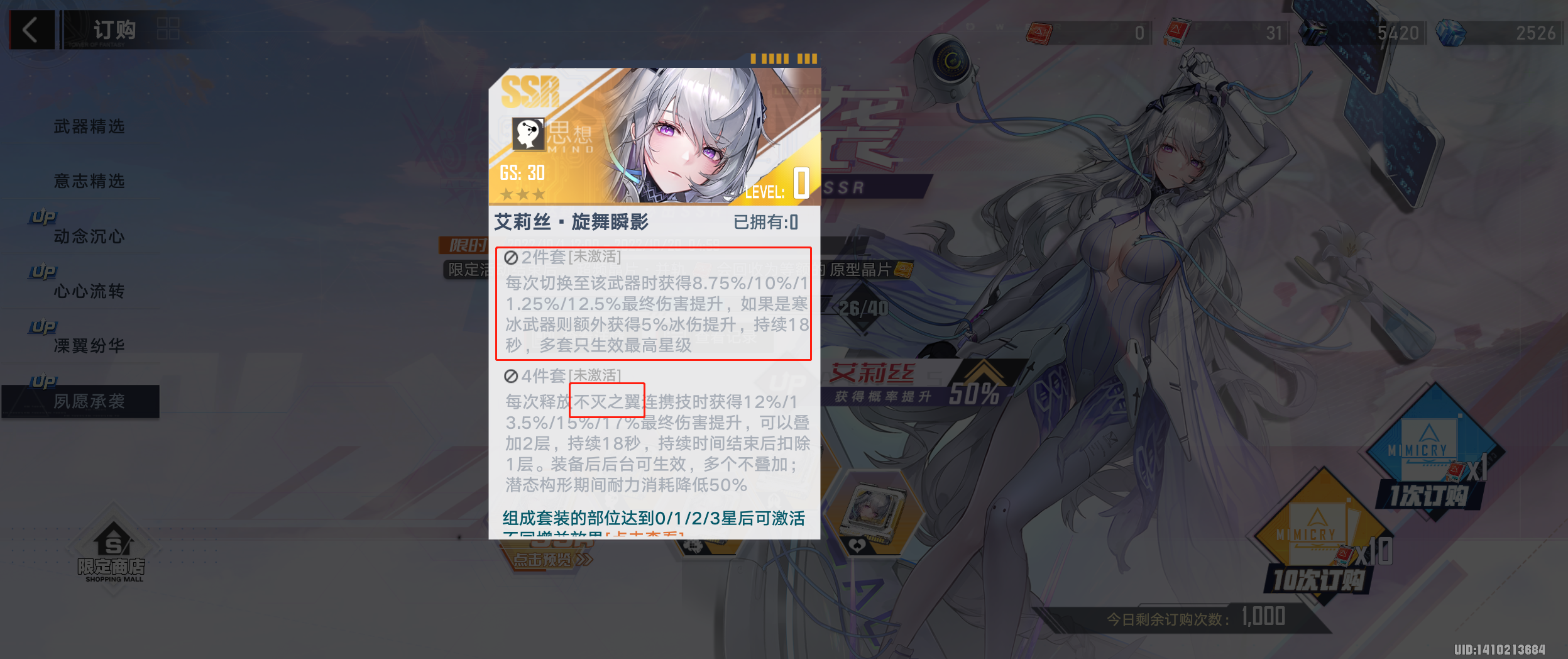 限定意志一般是跟随着某个限定武器一起推出的,拟态同名意志。大部分的限定意志2件套的效果会比较通用,但4件套就会比较偏向于适用自己的本源武器。如最近新出的艾莉丝,看2件套效果,你会发现这是一种可以为所有冰武器带来增伤的意志,但是再看4件套,就对装备的武器有条件限制了。