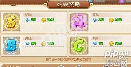 每周公会会根据总积分得到相应的评价,在下周一05:00时系统会根据评价向所有公会成员统一发放结算奖励