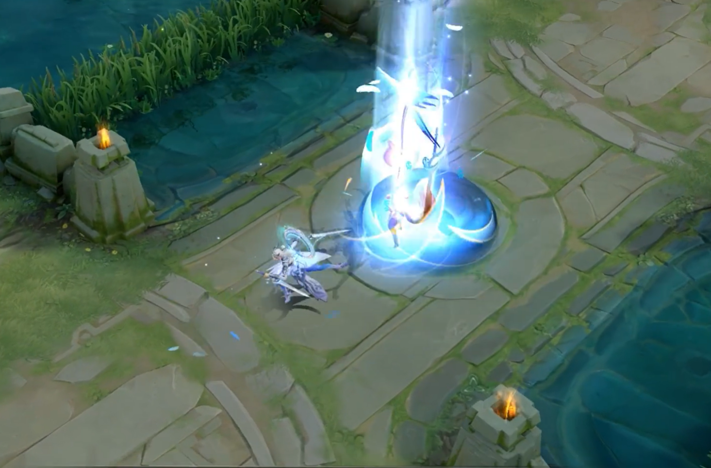 如果 说轻剑2技能让我有惊艳的感觉,那么重剑一技能就是惊讶,之后是惊喜,我从未想过技能还能这么设定,木兰是个剑客,用剑输出无可厚非,但这款皮肤却是个神明,所以不走寻常路也能理解。