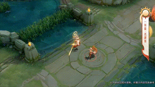 一技能没什么特点,很平庸,不过这里有个点,那就是这款皮肤头上的盘子是全程佩戴的,可能有些人不太喜欢这样的设定,就像冠军飞将有很长的“尾巴”一样,但我倒是能接受,只是弊端就是看不太清局内的脑袋。