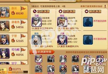 在武将渊源中,例如赵云,相对应的渊源就有蜀国的五虎将,相对应历史,不同的武将给予的渊源效果也不同,就赵云而言,赵云需要格挡,暴击跟破击,建议新手玩家在选择渊源的方向上,优先激活以上几个属性的渊源武将,但是前提都还是玩家必须要用拥有相对应的武将。关于武将的渊源,橙将大于紫将,紫将大于蓝将。在前期没有武将的情况下,玩家可以有什么上的,做到战力最大化。