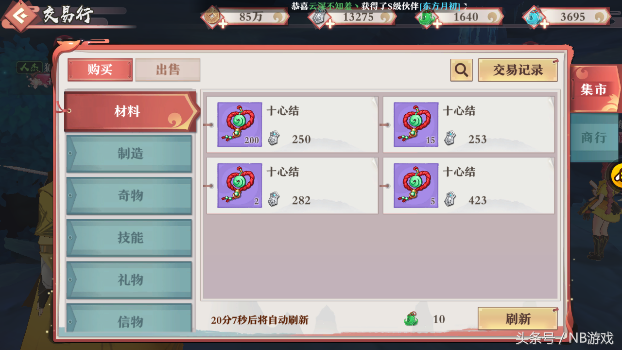 上面的材料心结是容易获取的材料,或者说是价格最低的,可以通过很多途径都能获得,比如副本和集市等,但推荐大家从集市中购买,相对来说比较便捷。