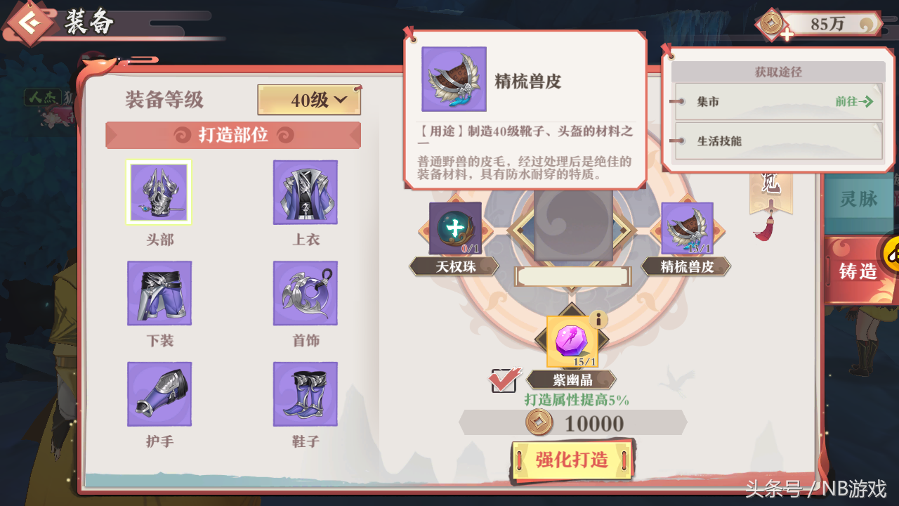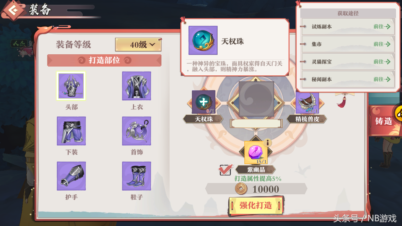 狐妖小红娘装备铸造攻略(材料收集指南)