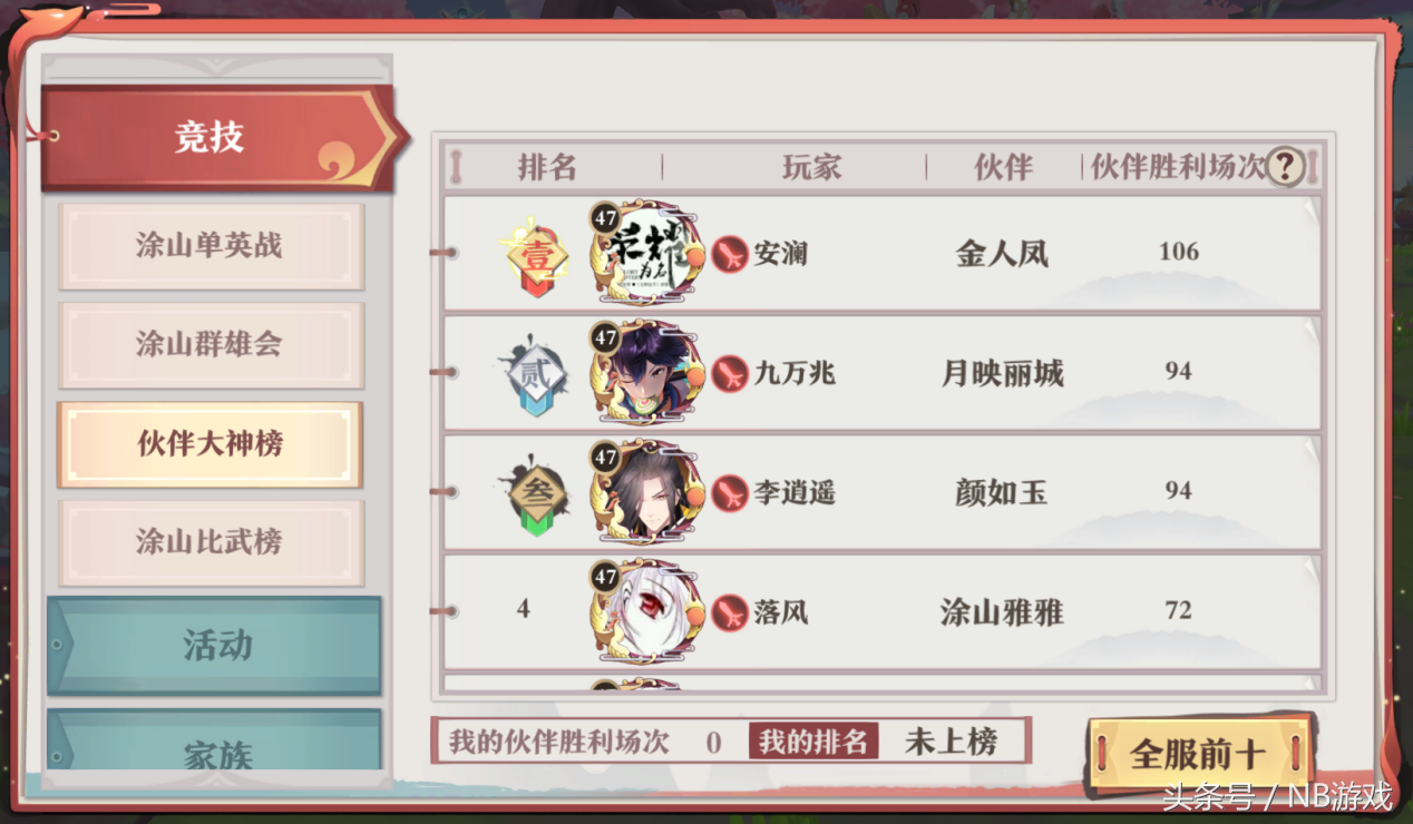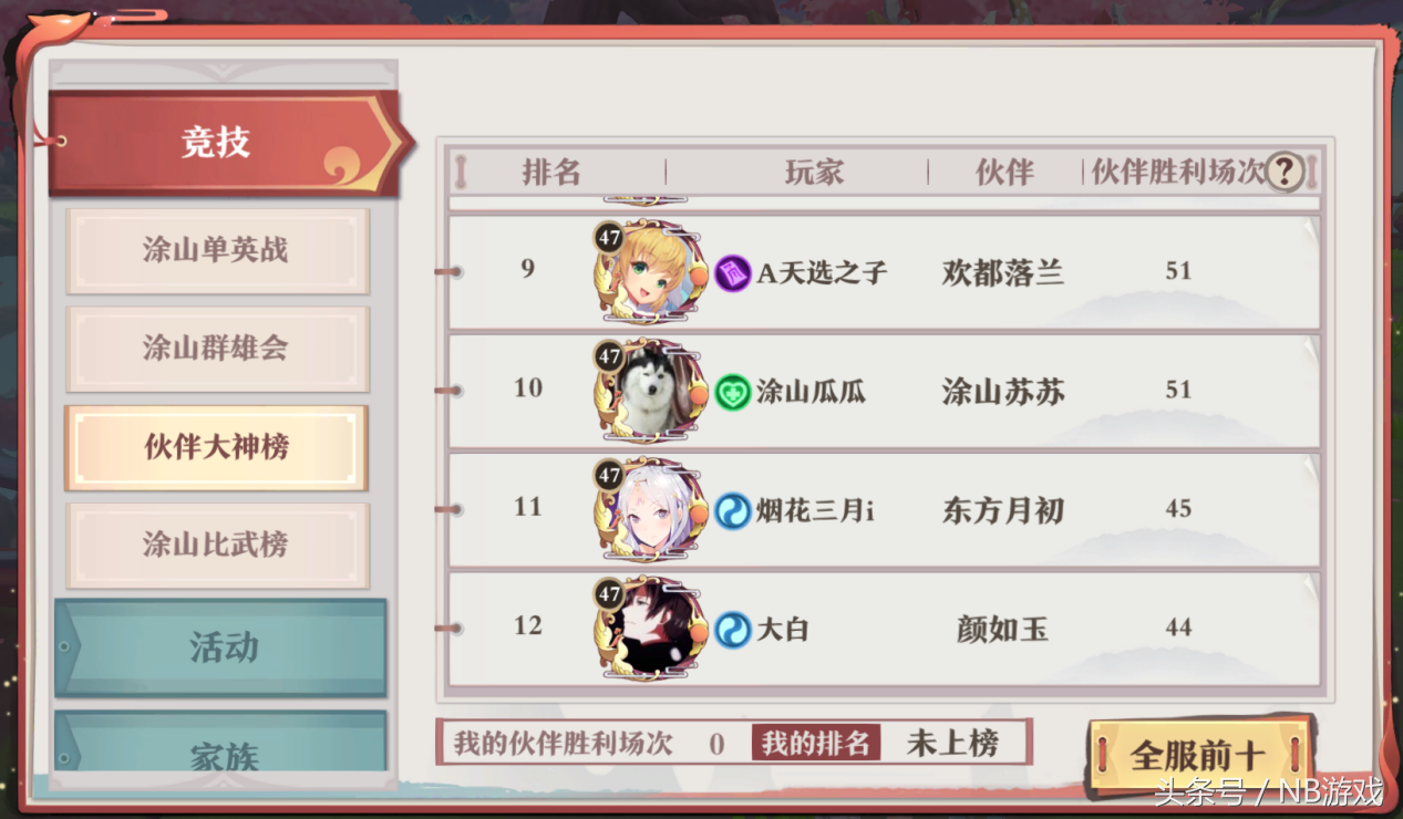 从内测的伙伴排行榜来看,有这些伙伴位居前列,其中金人凤,月映丽城,颜如玉,涂山雅雅,涂山苏苏,王权霸业,欢都落兰,东方月初等都有比较好的排名。游戏游戏君和大家分析一下这些伙伴的套路。