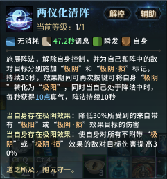 啰嗦一点,两仪化清阵不插残卷在敌对目标附近释放可以回真气和减伤,按两次是回真气和增加30%伤害,所以我们在使用的时候都要按两次。