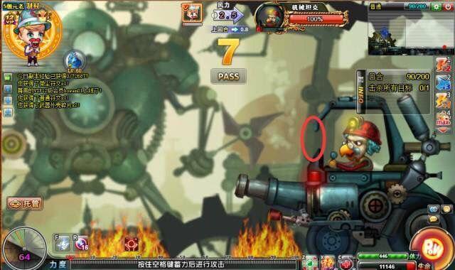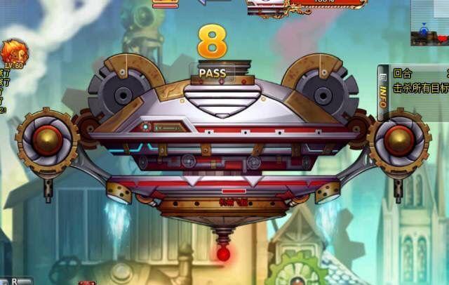 此关地图和以往副本有很大区别,怪物生成在一个喷射机上,喷射机每回合会产生一个故障点,机器人发现故障点会立即去维修。喷射机一共6个故障点,有3个故障点用常规武器时无法打到的,可利用雷霆穿透地形的特点击杀。另外此地图受风力影响特别大,是正常地图的5倍,因此可以利用恶灵无视风力的特点顺利击杀,需要注意的是,要求力度和角度比较精确,不然很容易打到管道上。这一关难度不高,只要玩家够准,合理利用加血等技能可以轻松通过。