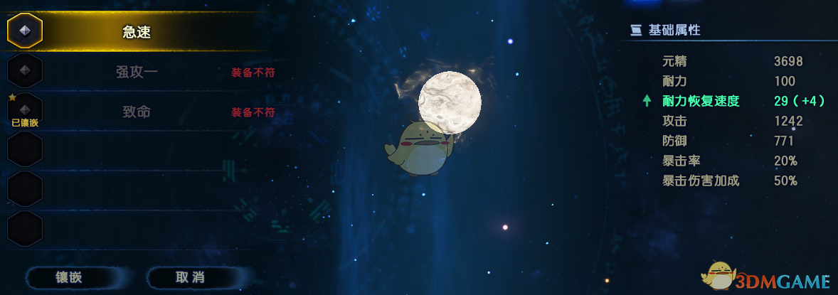 在“山吃人”支线中,北洛被带入牙山后不久,在山道中发现猎户的尸体的地方(如图),有一扇封印石门,解封后入内,在尽头有一个宝箱,可以得到“耐力回复速度+4”的镶嵌灵石“急速”(如图)。