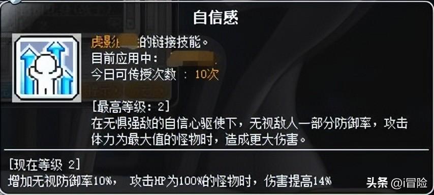 第5个要练的是虎影,他的LINK是无视防御率+10%,对100%HP敌人伤害+14%。他这个LINK很有特色,就是你大号带他练级的时候,就差一点点血就能一刀秒的时候,这就是神技。如果带上这个LINK还是不能秒怪,那就是拉跨。他的角色卡加的是运气,除非大号是飞侠职业,否则玩家可以先练到120级就可以了。虎影升级速度飞快,技能眼花缭乱却也很养眼,喜欢操作就可以秀翻天,手残的就无脑土破流,也是安逸舒适。