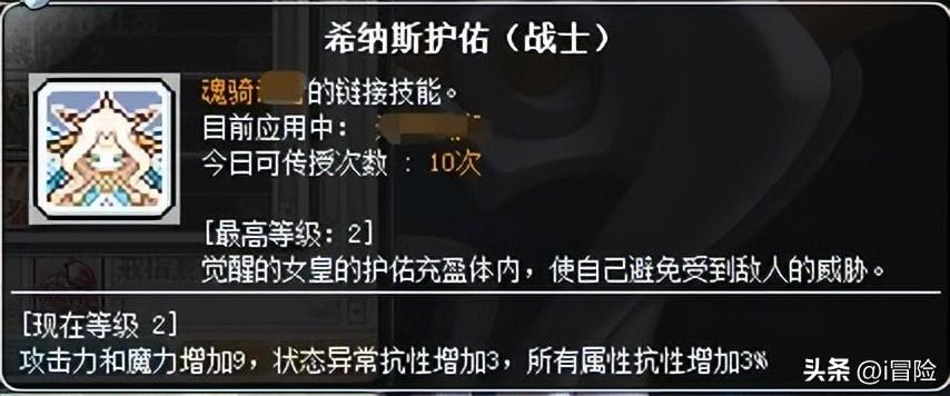 第9个要练的是魂骑士,他的LINK是(物理或魔法)攻击力+9,单个骑士团所加的攻击比剑豪差不少,为何要练他?因为0转相对精灵的祝福+20攻来说,增加一个骑士团150级角色,可以让女皇的祝福+30攻,也就是说练一个骑士团的角色就可以给大号额外增加被动10攻的面板,还是很不错的。至于为何选择魂骑士,第一是他升级太快了,第二是140级S角色卡增加1000血量,对于其他小号升级也有比较大的作用,建议直接升到150级。