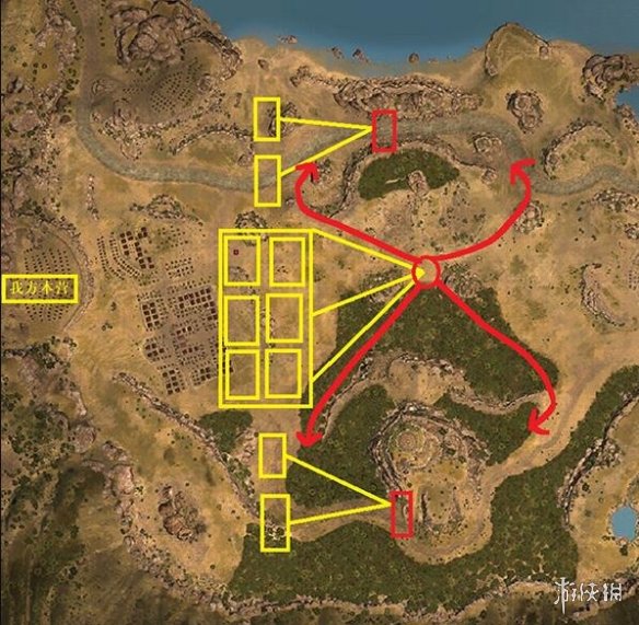 二、除上下路外,其余18个军团直扑中路据点,争夺视野据点的基础上在兵力优势和骑兵支持下保证中路速胜。