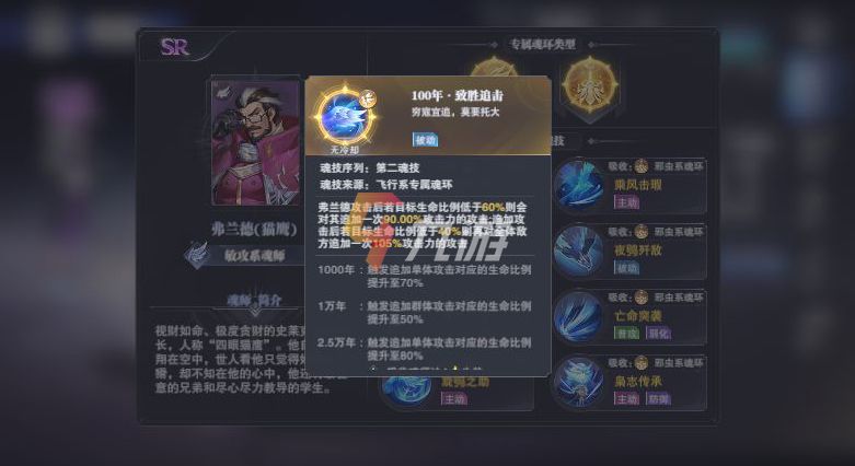第二魂技为飞行系,可以对血量低于60%的敌人额外追击一次,想要尝试追击协战流的话是一个不错的选择;