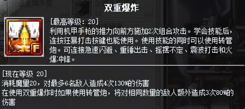 双重爆炸(二转)+转管炮同理,这两个技能属于刷怪和打BOSS一直要用的技能。