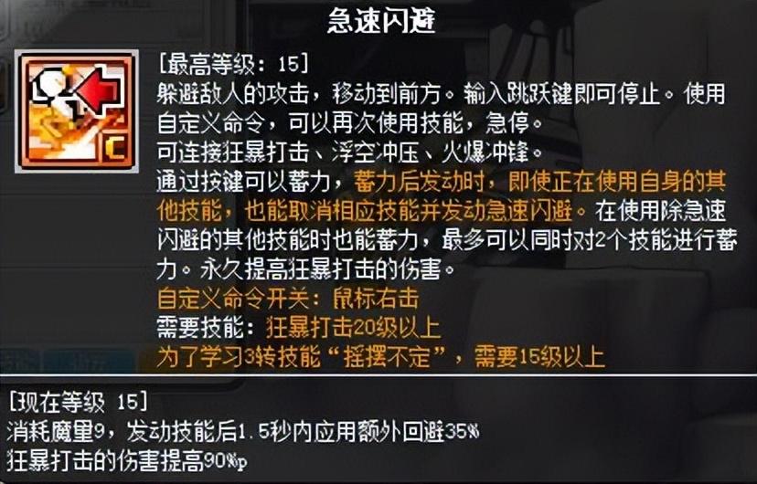 极速闪避是蓄力后向前冲刺,摇摆不定是蓄力后向后撤步,冲刺步较为常用,后撤步在BOSS战中较为实用,当然这两者均需要熟练掌握技能描述中跳跃键停止的操作,即取消蓄力位移的后摇,同时补充子弹。