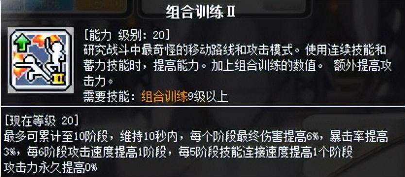 懒人福音。这个技能是一个持续按压的技能,且该技能范围内可以吸怪,没错,就是吸怪,以至于笔者刚用的时候怕被别人看成是挂而一直不怎么敢用。范围大概是黄昏勇士左边木桩上半部分的三层,即站在中间层可以吸到上下层的怪。该技能如果打到怪,直接可以叠满组合训练的被动层数。