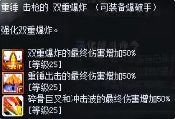 碎骨巨叉=震波打击 > 狂暴打击=双重爆炸 > 重锤出击=转管炮