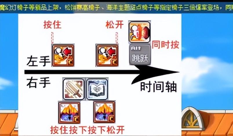 这部分操作可以自行上B站观看教学,很带感的一个视频,把冒险岛玩成劲舞团。标题为:冒险岛爆破手poppin子弹拳基础教学(入门必考),作者:基兰基影。