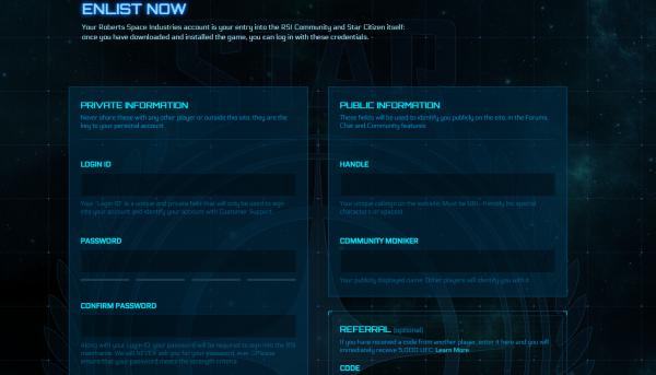 进入注册界面(https://robertsspaceindustries.com/enlist?jumpto=%2Fstar-citizen)填写相关信息,完成账号注册: