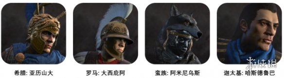 竞技场有四位骑兵将领,希腊的亚历山大、罗马的大西庇阿、蛮族的阿米尼乌斯、迦太基的哈斯德鲁巴,对他们的技能分析如下。