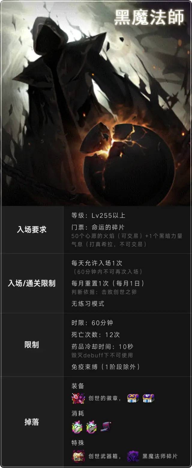 黑魔法师碎片则用来解封创世武器,每个月都要打一次