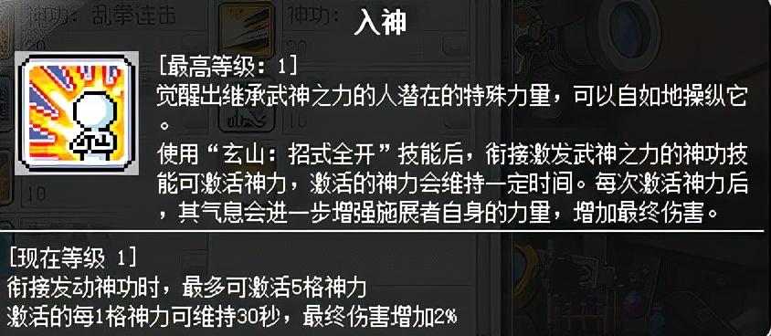 可能看到这里读者会觉得有点奇怪,为什么从三转开始的神力系统开始介绍。这是因为,高额的终伤,只是墨玄神功系统中的伤害数值的一部分,其中更加重要的是墨玄与众不同的技能机制。四转后获得的武神状态,不仅会增强墨玄的基础攻击技能——玄山基本招式,还会为四转之前获得的技能附加额外的神功效果。之后的所有技能,都会基于已经四转,获得了武神状态之后进行介绍。