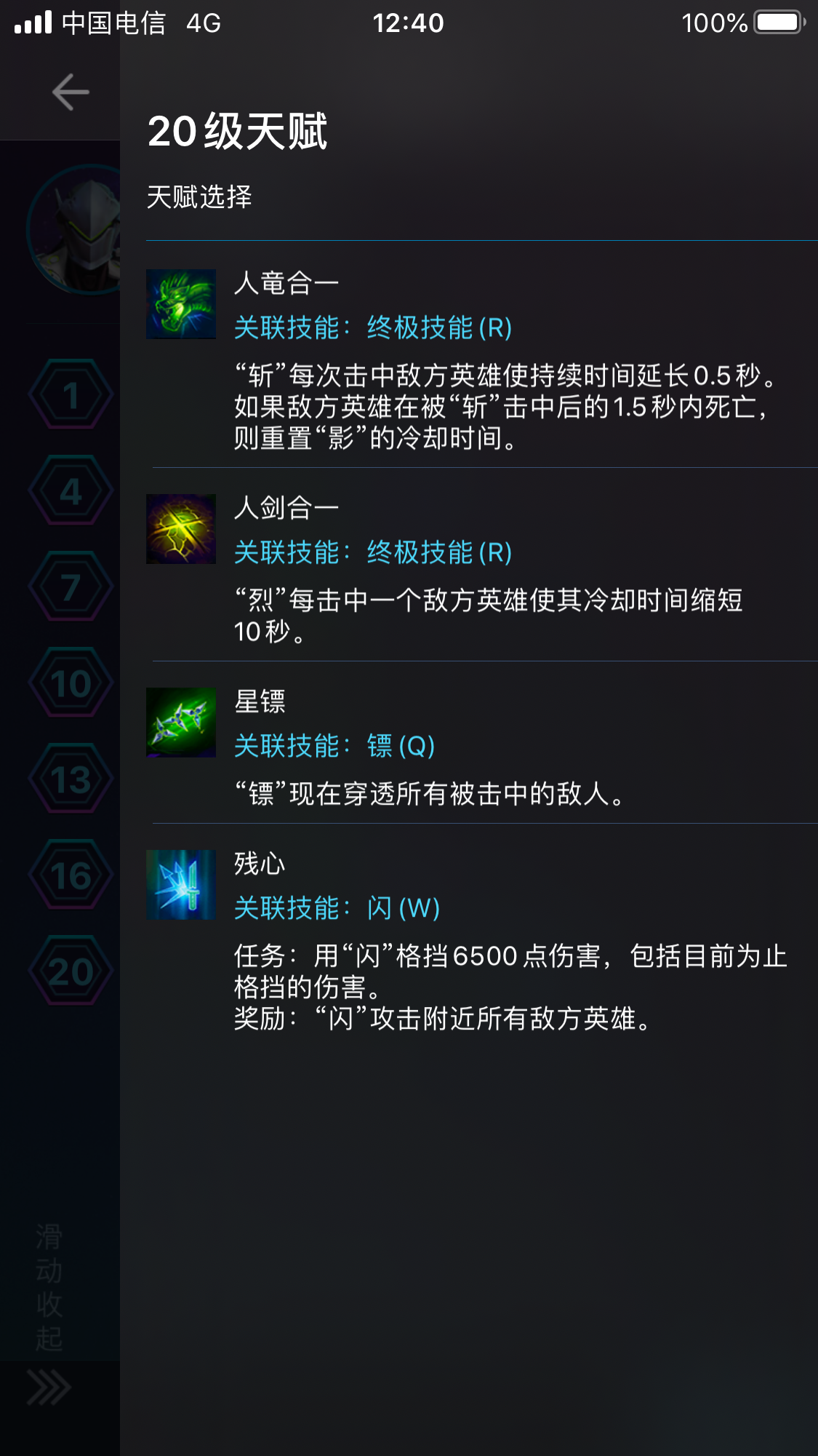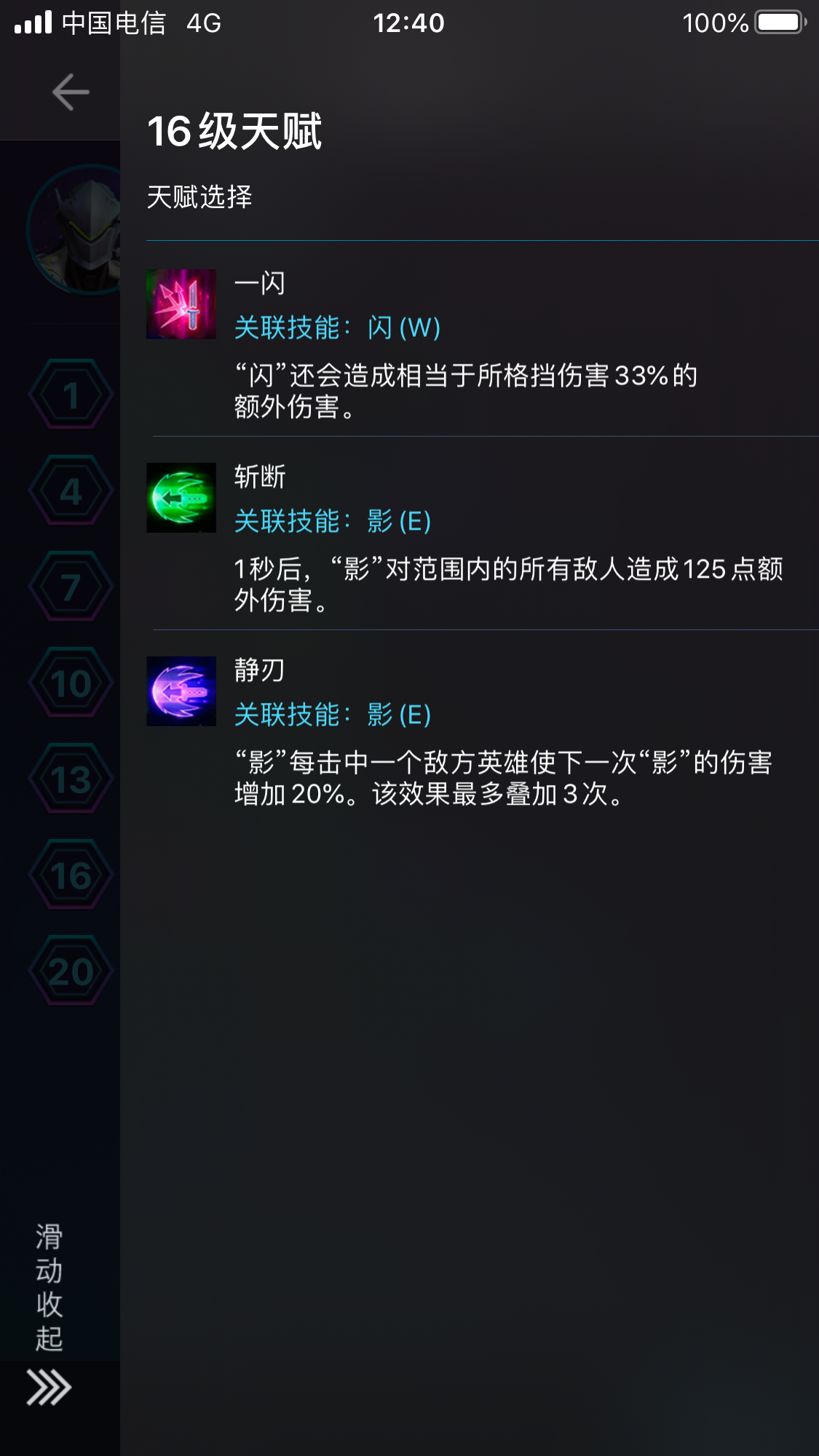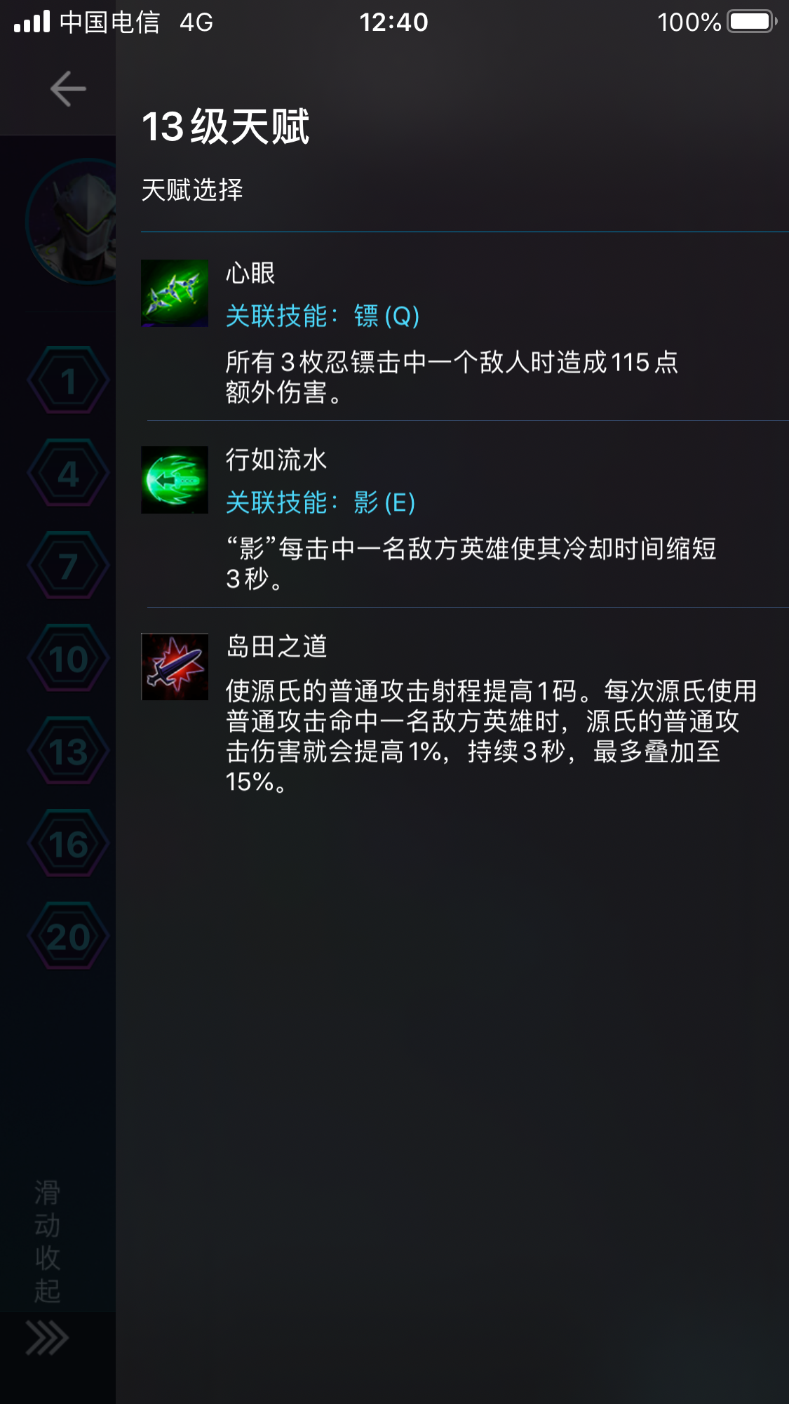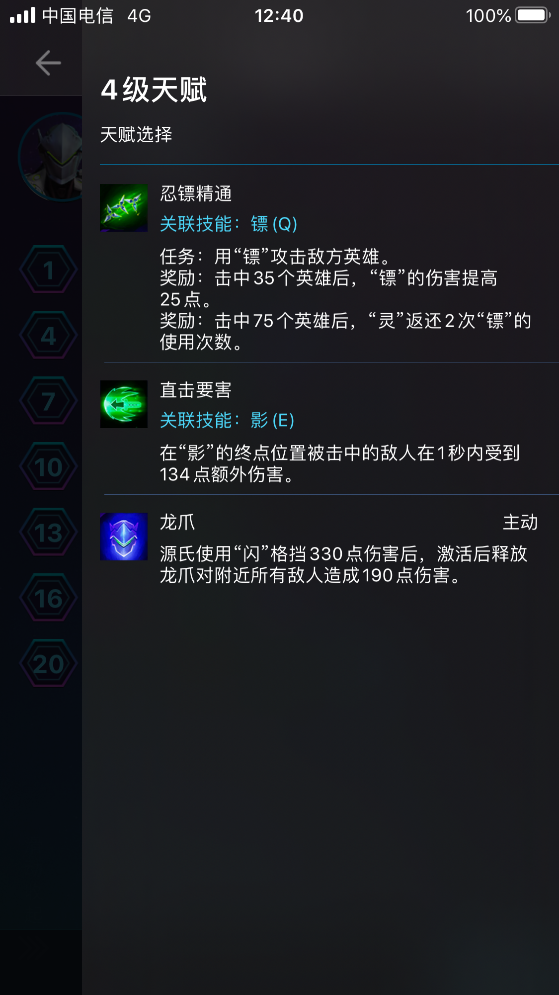 龙爪:常规选择,提高源氏的爆发,各方面类似泽拉图的Q技能