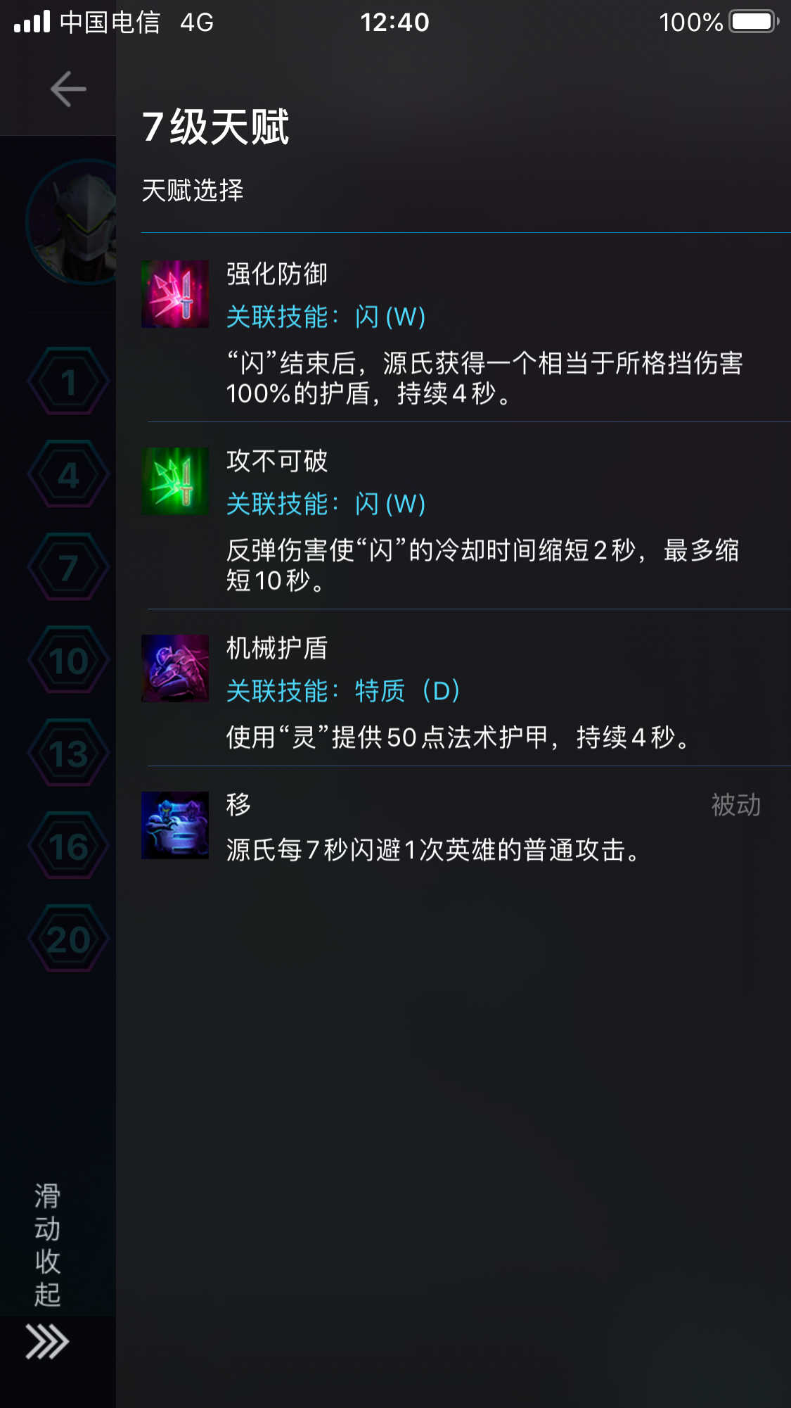 机械护盾:在对面法系输出极多是可以点出,使源氏可以扛2波爆发,但功能性不如强化防御