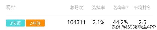自从神族登陆多多岛之后,神法的热度就一直不减,神法是一个足够好玩,又很强的流派,所以受到很多人的喜爱,来看一下神法高达44.2%的吃鸡率,平均排名也是2.5,如果不能登顶,恰个烂分也是美滋滋嘛。
