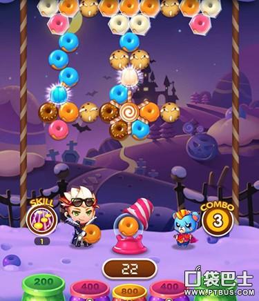 接下来就有点难了,这时有一堆不连贯的泡泡,要善用变色球。