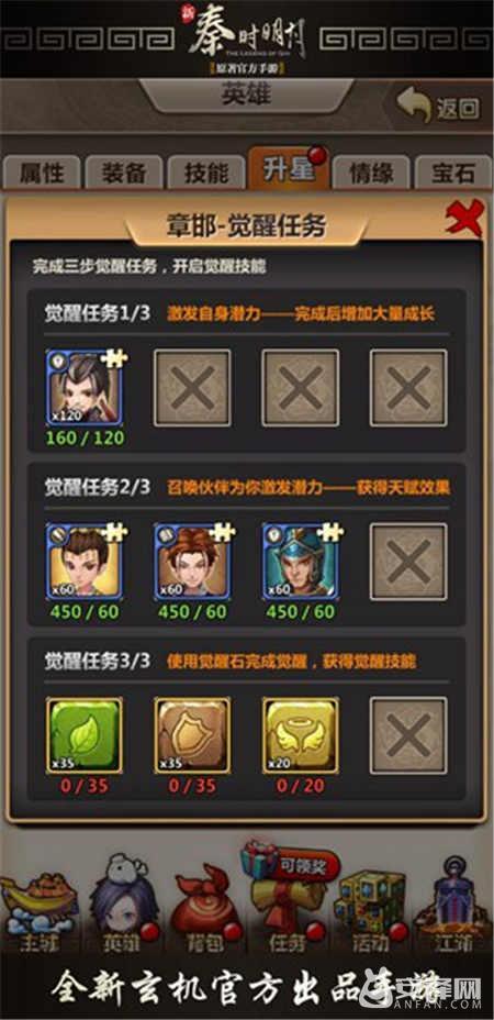 任务三:收集35个觉醒石(力)、35个觉醒石(屏)、20个觉醒石(殇),觉醒石集齐后消耗400万铜币,点击完成觉醒即可成功觉醒。