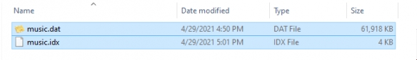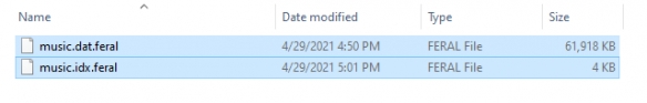 重命名music.idx.feral和music.dat.feral音乐文件,这样。feral扩展名就被删除了。