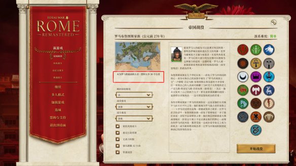 罗马全面战争重制版胜利条件怎么查看?在游戏开始,大家可以查看派系的胜利条件,有些玩家不知道在哪里看,这里给大家带来了罗马全面战争重制版派系胜利条件查看方法,一起来了解下吧。