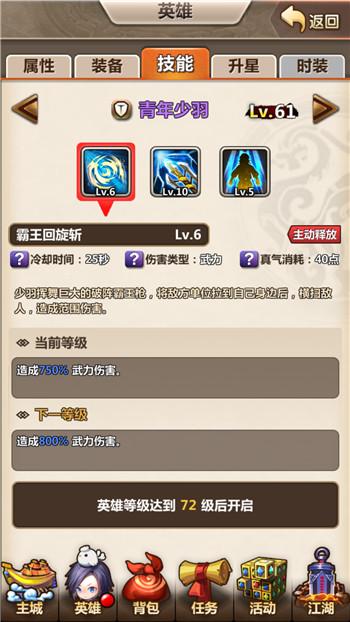 之前也有很多人说,青年少羽的大招简单的说就是把所有人拉倒一起而已,但是这个大招在后面会紧接着一段伤害的,而且一级的大招就武力加成就破400% 了!而且每级是以50%来增加伤害的!配上星魂、天明等群体伤害的英雄,伤害简直可怕!