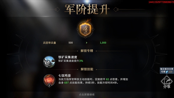 领主点击已经解锁的指挥官,可打开指挥官界面。在指挥官界面的右侧,可看到军阶提升相关信息。