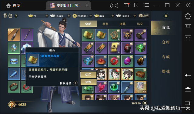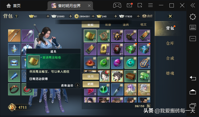 另外补充一下昨天说的出金点藏宝图,当然游戏里不叫藏宝图,只是经常玩游戏的习惯这么叫,我截图说明下,游戏里叫青龙秘卷,产出为日常任务中的诸子任务。