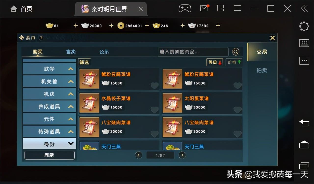 接下来说下今天的第二个出金点,36级开启的身份,庖厨。放下易市中的截图,具体自己研究,因为自己手上有其它的项目,身份还没有去研究。