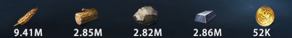 资源信息:指领主当前情况下,所拥有的粮食、木材、石料、铁矿以及金币资源数量的多少。