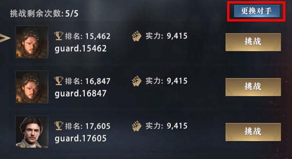 如果领主在挑战过程中击败目标领主,则可占据目标领主当前排名。并且挑战板块会根据领主当前的排名进行刷新,补充更高排名的对手。领主也可点击更换对手按钮,刷新对手。
