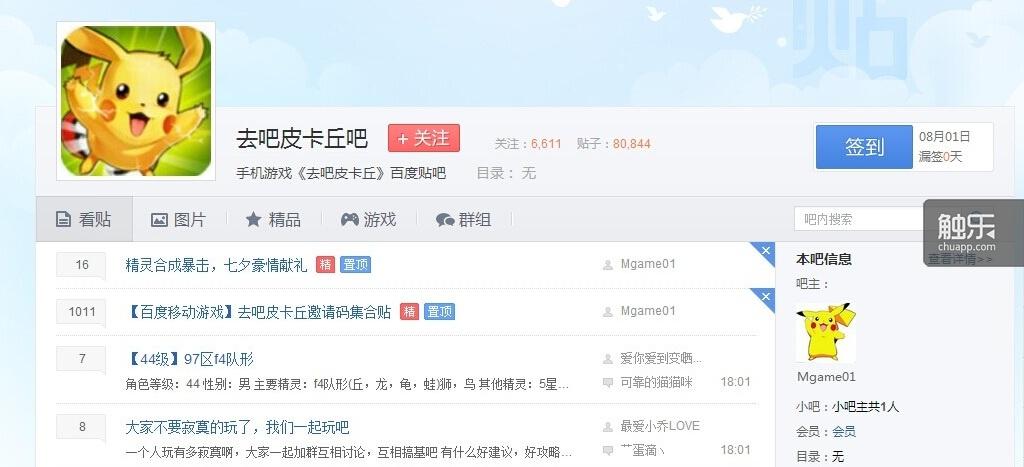 一番盖楼与删帖的夺还战后,去皮吧逐渐平静下来。现有的贴子大概可以分成三类:一是新玩家的疑问;二是官方运营团队的互动,激励玩家继续玩下去;三是脱坑玩家对游戏最后的怨念。曾经走上风口浪尖的版权问题渐渐走出吧民的视野。纯净的贴吧离不开辛劳的吧务——Mgame01,从他的皮卡丘头像我们可以看到,他对皮卡丘是爱得深沉。他曾在口吧吧民来袭时认真说明:《去吧皮卡丘》是由我们呕心沥血制作的原创游戏,并不存在抄袭,现在已经获得国内正版版权,请大家放心。