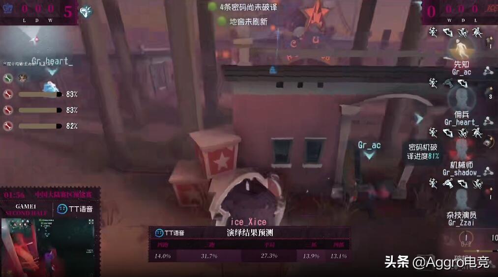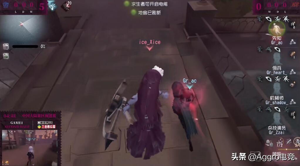 而最近,在第五人格COA5中国大陆赛区预选赛第二周的第二天比赛中,由Gr战队对阵ice战队时,Gr战队的ac选手就上演了一出堪称教科书级别的先知教学。这场比赛ice战队选择了监管者破轮,Gr这边选择先知、机械师、杂技演员与佣兵的求生者阵容,比赛一开始,破轮就盯上了Gr_ac操纵的先知,率先出击打出先知的第一次“役鸟”,翻窗时触发恐惧震慑先知第一次倒地。