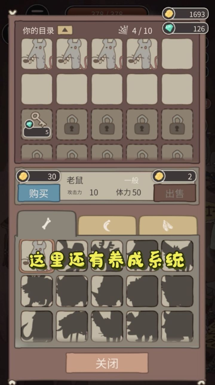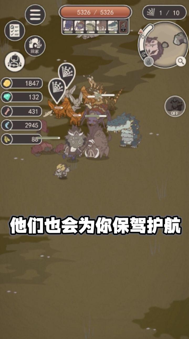 1.玩家可以外出洞穴探索,通过战斗捕捉动物,组建动物军团,随玩家征战四方。