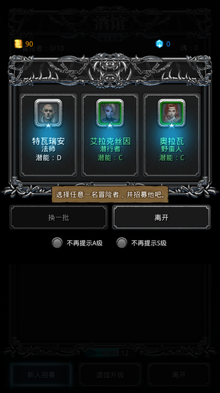 《地下城堡2》中有很完善的职业体系划分,玩家通过新手引导后开启酒馆,就可以开始招募团队人员了,酒馆中自动刷新三个人物,对于初期来说B级就算是一个不错的开头了,而人物可以用魂进行升级,到10级可以进行转职,而酒馆等级的提升能增加人物等级上限。