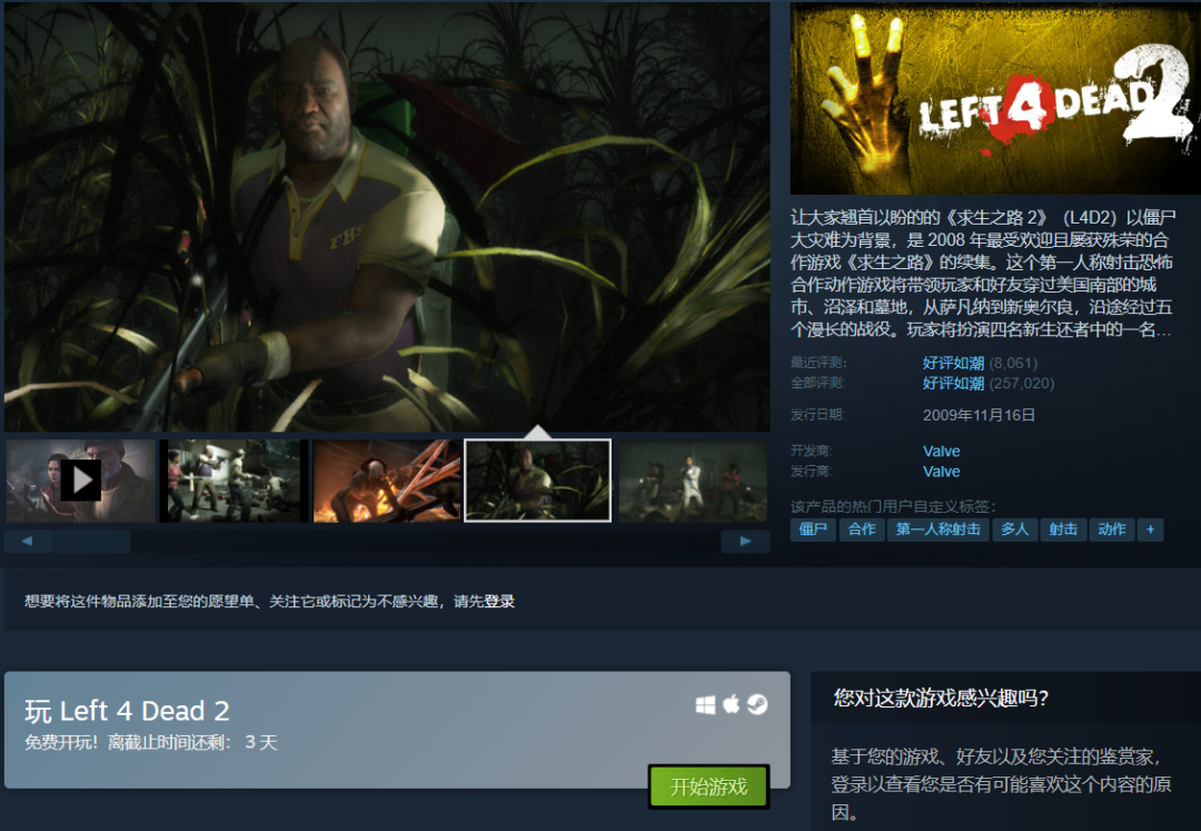 求生之路2官网最新消息(推新DLC且steam限时免费玩)