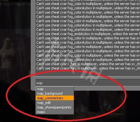 2.返回主界面,首先由需要先建立主机的电脑,按“~”键,呼出控制台在底部输入框中输入map然后空格,然后就会出现很多地图让玩家选择,用方向键上下进行选择,选择一个想玩的,就按回车键就可以,之后就会建好游戏。