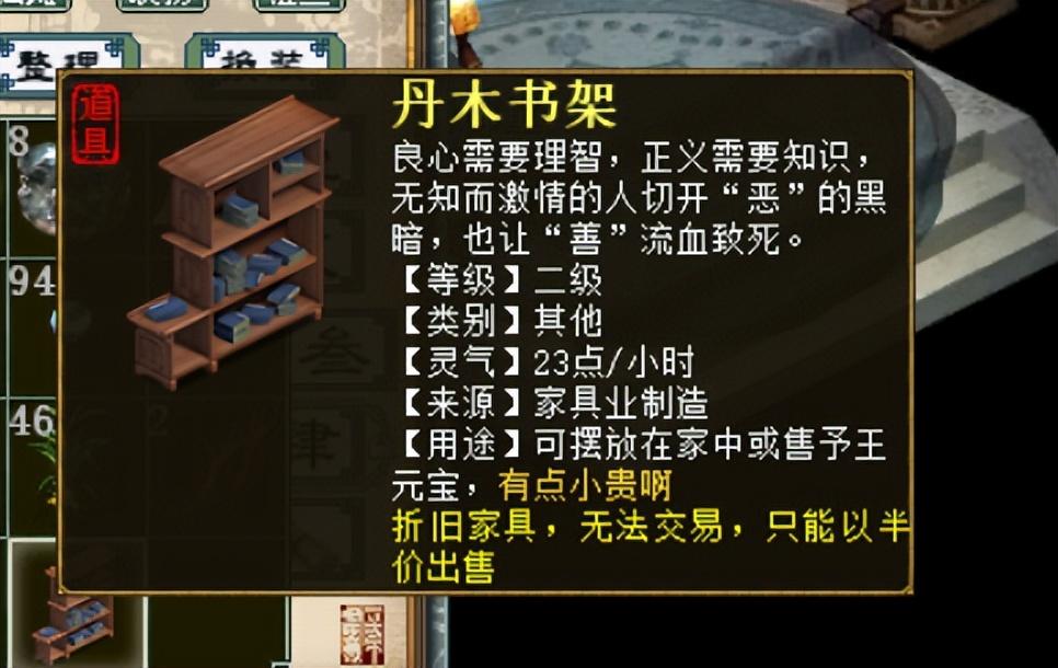 按照人的正常思维来说,一定是希望用最少的钱,去搞定一套可以满足每小时回灵450的家具最好,因为灵台自身有150点的基础回灵,所以家具提供450点回灵就可以实现600/小时的回灵,在选择其他家具类型时,摆放的最大值是5,每个书架回灵23点,5个书架,回灵可以达到115点。