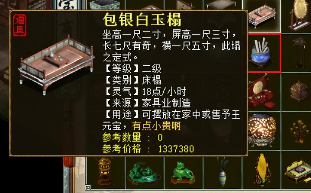 包银白玉榻,每小时回灵18点,置办2个可以解决36点回灵。