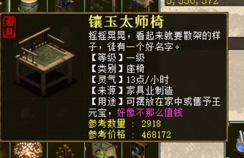 座椅,置办4件镶玉太师椅,单个每小时回灵13点,共回灵52点,这样一套家具置办下来,灵台每小时回灵足够达到600,而且一套家具的总体开销在5000万左右,不过,如果用比较贵的家具,那估计要另外计算了,一心觉得,景泰蓝花瓶,可以不考虑,毕竟这花瓶有点贵。同样一套2级家具可以把回灵打满,没必要多花钱去买3级家具。对于庭院满回灵家具如何摆放,大家有什么其他的妙招吗?欢迎评论区留言讨论哦。更多精彩内容,咱们下期再见吧。